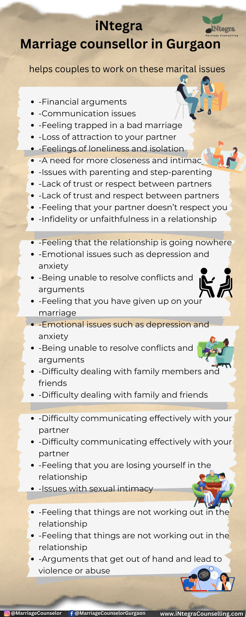 The most common reasons for seeking marital counselling in Gurgaon are:
